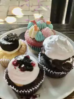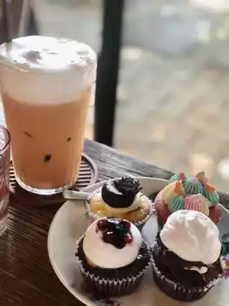 Cafe near the outer ring road of Chiang Mai. For those who like cupcakes, I would like to recommend this shop. The atmosphere is very friendly. The owner makes them himself. The shop is lightly vintage. There is a small garden in front of the house. You can park about 2 cars. There are not many people but they keep coming. The cupcakes are cute and suitable for those who want to eat many flavors. It's delicious. The chocolate is good. Not too sweet. Eating it with hot tea is also delicious. But we like cold food so we eat it with iced tea. This is another shop in Chiang Mai that Peton recommended. #Get a discount without relying on luck #Cafe #Chiang Mai Cafe #Chiang Mai #chiangmai