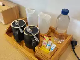 Recommend a lovely accommodation in Chiang Mai, located in the old city, near Thapae Gate and other tourist attractions. It is a modern minimalist style accommodation, not very big. The room looks new and clean. We booked a Superior King room, not very big. There is a refrigerator, TV and a small mini bar in the room. The bathroom is just the right size. There are complete amenities, a hair dryer, and a very comfortable bed. The price includes breakfast. It is a buffet with many choices. What I like the most is sticky rice with grilled pork and fried dough sticks. The food tastes delicious. When checking in, there are 3 freebies to choose from: snacks, drinks, and small items. It is very unique and unlike anywhere else.