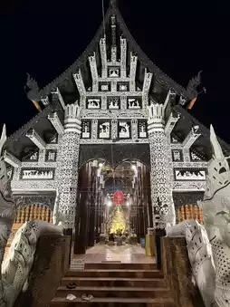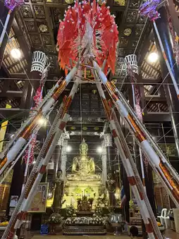 Noteworthy features are the beautifully decorated wooden main hall (wihan) and the huge chedi (stupa) towering behind it.