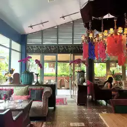 The exterior boasts a colonial-style design, while the interior blends antique elements with contemporary art. It's a unique Chiang Mai experience where you can indulge in "beauty" while dining.