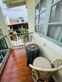 Uniquely decorated in Lanna style. My bathroom had a bathtub, which was great for soaking. The room was comfortable and clean, with a small balcony outside where you can enjoy coffee and breakfast. The only downside was that the bed and blanket weren’t as comfortable as I’d hoped.
