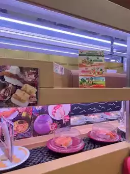 The sushi conveyor belt rotates around the restaurant. 🌀 Choose from a variety of dishes, or order conveniently via tablet.