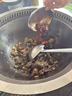 Experience "Firewood Chicken" stir-fried over a blazing fire