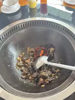 Fragrant spices, stir-fried with a variety of vegetables sourced directly from the mountains, along with several Chinese ingredients and naturally raised black chicken. The restaurant's Firewood Chicken stir-fry comes in two sizes: