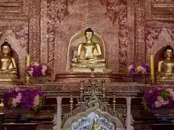 Wat Phra Singh Woramahawihan, or simply "Wat Phra Singh," is a first-class royal temple nestled within the moat of Chiang Mai. Its highlight is the Wihan Lai Kham, built and decorated in Lanna style. The Wihan's interior boasts beautiful murals with "golden patterns on a red background." It also houses the "Phra Buddha Sihing," a sacred Buddha image revered by Chiang Mai.