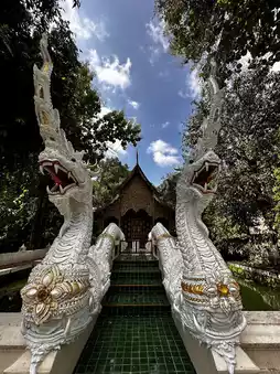 The temple features *two main chedis*, housing the crystal Buddha and the marble Buddha 🙏. Additionally, visitors can admire the *ancient murals* depicting scenes from Buddha's life and traditional Lanna culture 🎨. The temple's unique Lanna-style architecture, with ornate carvings and gong decorations, adds to its charm 🏰.
