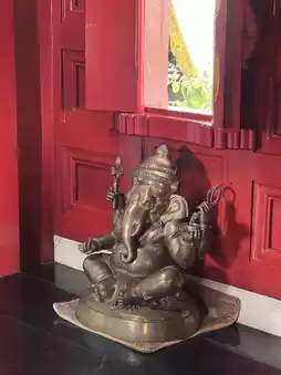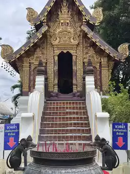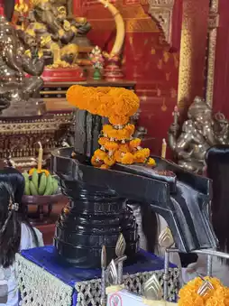 Wat Pa Daet in Chiang Mai is a sacred site known for its Ganesh shrine, which houses the famous deity named Uttarashree Ganapati. The name signifies "the one who grants success in righteous paths." The Ganesh statue is crafted from blackened bronze, featuring four arms holding a vajra, a noose, a tusk, and a bowl of sweets. Many visitors come to perform rituals and seek blessings from Lord Ganesh. It's worth noting that offerings are often booked months in advance. A Brahmin priest conducts the fire ritual (Aarti) and applies a forehead blessing. Alternatively, visitors can purchase worship kits directly from the temple.