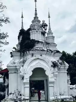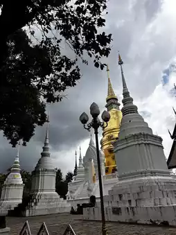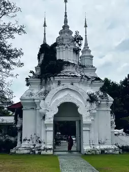 The temple's main attraction is its *large white chedi*, which houses a sacred Buddha relic 🙏. The chedi is surrounded by 32 smaller chedis, each containing the ashes of Chiang Mai's former nobility 🏰. The temple's interior also features *intricate murals* depicting scenes from Buddha's life and traditional Lanna culture 🎨.