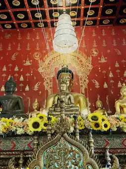 The temple's key attractions include its Assembly Hall (Viharn), which features a mix of Lanna and Thai influences, and the Ordination Hall (Ubosot), a small Lanna-style wooden building with elaborate decorations. The Scripture Library (Ho Trai) is another highlight, built in 1829 with stunning Lanna flower motifs 🌈.