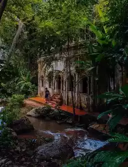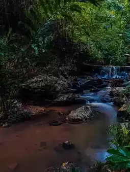 A small stream flows through, providing soothing sounds.