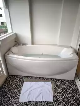 Away Chiang Mai Thapae Resort - A Vegan Retreat is a tranquil hotel located in the Thapae area, away from the hustle and bustle. The accommodation is divided into two sections: the original zone with the lobby and restaurant, and the new zone with four floors. Guests staying in the Spa Suite with Private Jacuzzi will be in the new building. The rooms are spacious, clean, and fragrant, with excellent soundproofing from outside noise. The beds are comfortable, the air conditioning is cool, and the amenities are complete, including a coffee machine, kettle, four bottles of drinking water, and refillable water bottles available on every floor. Other facilities include a safe box and hairdryer. The bathroom is divided into wet and dry zones and is equipped with refillable amenities such as shower gel, shampoo, conditioner, and lotion. The private Jacuzzi on the balcony offers a relaxing soak with good privacy, and the balcony overlooks the swimming pool. Guests receive a complimentary set of snacks and herbal drinks upon check-in. Breakfast in the new building is a mix of à la carte and buffet, with beautifully presented dishes that taste so good you might forget they are vegan. For a full buffet experience, guests can visit the restaurant near the lobby in the original zone. The new building also features a spa and fitness center on the second floor. The staff provides excellent service throughout the stay.