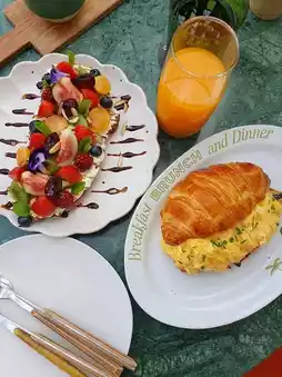Breakfast was served a la carte, with each guest allowed to choose one dish. Every menu item looked delicious and came with tea, coffee, and juice. The portions were generous and very filling.