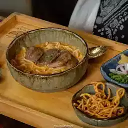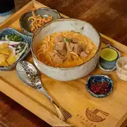 This Japanese-style Khao Soi restaurant is located on Charoen Rat Road in the Fa Ham area. The restaurant's warm wooden decor gives it a Japanese ramen-like feel. There's an open kitchen where you can watch the chefs prepare the food fresh, making it feel like you're sitting in a ramen bar. Foodies and those who love content must visit.