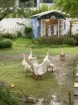 A European-style cafe with a colorful building and plenty of photo spots. It's raining in Chiang Mai, but we came in the rain. No matter which angle you take photos from, you have to come on a day when it's not raining. The shop is so beautiful. I love the table with the cake. The cake is beautiful and spectacular. Every corner is beautiful. You won't get bored of taking photos.