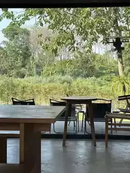 I loved that the sky was beautiful when I went. The atmosphere was great. Even though it was a bit hot, it was perfect for reading. Seeing the flowing water, hearing the birds, and being surrounded by greenery is the most special thing for a book lover like me. #ChiangMaiTravel #ChiangMaiCafe #CafeReview