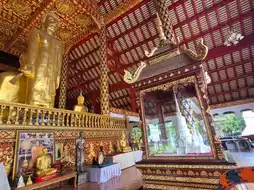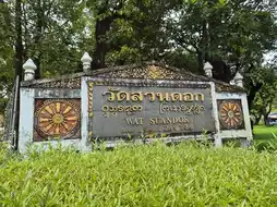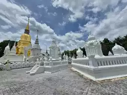 Built in 1371, this is a brief history of Chiang Mai. We often refer to this area as Lanna-style architecture, as northern Thailand was originally part of the Lanna Kingdom. Suan Dok means "garden," as this area was originally used as a royal garden. As you enter the gate, you'll be greeted by a magnificent golden bell-shaped chedi. This bell-shaped chedi commemorates the monk Sumana Thera. Nearby are many small white pagodas, both beautiful and perfect for photos in Thai attire.