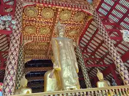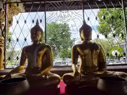 The main temple hall is enormous, and the entrance fee for foreigners is 20 baht. Here you'll find statues of deceased monks and two massive Buddha statues, one standing and one seated. They're truly magnificent.