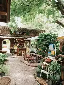 🏡🌼 Ha-Moy (Art & Cafe) is a cafe that started out as a small place of happiness. It's located in a front yard surrounded by lush greenery. Upon entering, you'll feel warm, relaxed, and friendly.
