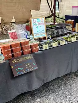 In addition to food, there are also stalls selling handmade accessories, clothing, straw bags, dyed fabrics, and other creative creations, though the prices aren't particularly high. There's also a sheep area where you can buy grass-fed lambs (for a fee, about 50 baht per session) and interact with them up close.