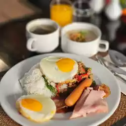The colonial designed hotel has an outdoor swimming pool and a restaurant and bar that we have our breakfast daily and breakfast, although choices are limited, but the food is delicious.