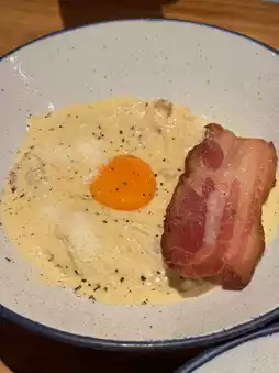 This is a very good fresh udon noodle shop. The udon with creamy fish egg sauce is very good. The udon noodles are soft and chewy and go very well with the sauce. The fried pork tonkatsu is also very good, crispy and fragrant. The gyoza are also delicious. Personally, I think the carbonara is a bit too greasy. Next time, the beef is very good. Good meat, good rice, good soup. Overall, this shop is very good. It's another favorite shop in Chiang Mai. I want everyone to try it. It's really good. The mousse is also very good. Next time I go to Chiang Mai, I will definitely go back again. #VisitChiangMai