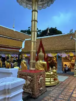 I took the elevator up to Doi Suthep☺️ Upon reaching the top, you'll immediately see the golden Buddhist temple. Its gleaming exterior is truly stunning. Inside Doi Suthep, you can also see a cloud-like phenomenon, which I experienced with the help of a guide. I highly recommend this Chiang Mai tourist attraction.