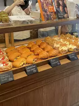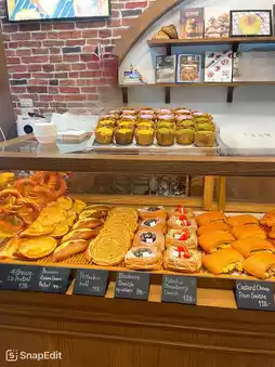 This is another must-try in Chiang Mai. It's easy to find, located on the inner moat road, opposite Wat Pan Sao. Before entering, there's a queue for desserts hanging outside the shop. You must pick up your order before entering. The staff will call your order by number, one queue at a time. There's a wide selection of desserts to choose from. The interior is cutely decorated, with plenty of tables and drinks available. The shop is incredibly fragrant, with freshly baked pastries every day. The blueberry cream cheese pie is perfectly balanced, fragrant, and delicious. The tart isn't too sweet. The shio bread is crispy on the outside and soft on the inside, with a rich buttery aroma. Truly a favorite among many.