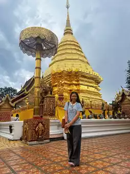 Located on Doi Suthep, it’s just a 30-minute drive from Chiang Mai city center. Along the way, you’ll enjoy stunning panoramic views of Chiang Mai, both during the day and at night. You can choose to climb the 306-step Naga staircase or take the elevator if you prefer not to walk.