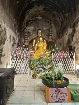 ✨ Ancient tunnels with four directions, constructed during the reign of King Kuena for meditation practice by Phra Maha Thera Chan. The walls inside feature niches for candle lighting and ancient murals depicting lotus flowers, peonies, and birds.