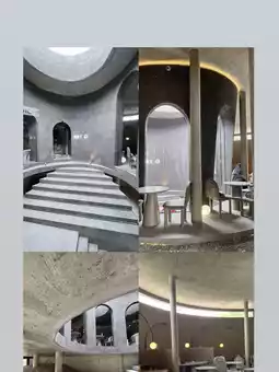 This dark-toned cafe offers a coffee experience amidst cutting-edge architecture.