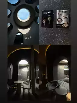 The staff is always ready, so you won't have to wait long for your drinks. They also offer drinks, bakery items, and food. If you come in the evening, you'll feel like you're dining in space.