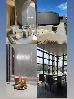 The cafe is located in Soi Lanna Villa Village, San Phisuea Subdistrict, Suea Ong District, Chiang Mai Province. Open daily. Beyond nature, Chiang Mai's cafes are a must-visit. Pin PLU TO, a new cafe with a space feel. This cafe and restaurant boasts a cutting-edge design. Decorated in elegant black tones, it stands out from other cafes. Its architecture stands out from afar, offering a chic Chiang Mai feel. The interior is a circular room with curved glass windows. There are several seating areas to choose from, perfect for both taking photos and working in a relaxed atmosphere. For those who love photography, we highly recommend the signature photo spot in the skylight in the center of the cafe. You're sure to get some great shots.