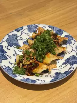 - Spicy Gyoza (139 baht): I ordered this as a snack. It was delicious! Crispy on the outside and juicy on the inside. The sauce was reminiscent of Japanese chili paste. The flavor was strong and helped cut through the richness.