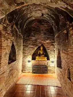 Wat Umong, located on Suthep Road in Mueang District, was built during the reign of King Mangrai around 1296 CE for the forest dwellers. Later, King Kuena built a tunnel for the Venerable Maha Thera Chan to use as a vipassana meditation retreat. The tunnel features an interior wall with multiple passageways.