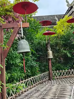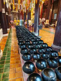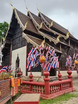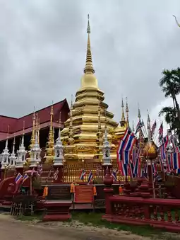 There is also a century-old ancient raised pulpit on display. Behind the Viharn Ho Kham Luang is the temple's principal chedi. The bell-shaped structure on an octagonal base is surrounded by beautiful pagodas.