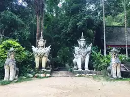 #VisitChiangMai Wat Phalat, also known as Wat Soktakami, is also known as the secret temple in the middle of the forest. This temple boasts both historical beauty, Burmese art adorned with nature, and an extremely peaceful atmosphere. It is another must-see check-in spot when visiting Chiang Mai. If you plan to go to Phra That Doi Suthep, we recommend stopping by this temple first as it is just on the way up. However, the beauty and nature surrounding this temple is definitely not just a pass-through temple. Personally, I like the unique statues scattered throughout the temple grounds. Aside from the beautiful architecture, there is also a small stream and waterfall running through the temple grounds, with a viewpoint offering views of Chiang Mai below. The reflection of the sky on the water and the view of Chiang Mai is a must-see. #WatPhalat #VisitChiangMai #Thailand
