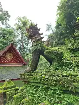 Wat Pha Lat (Sakidakami) is a temple hidden amidst the forest on the way up to Doi Suthep in Chiang Mai Province. The atmosphere of this temple is very peaceful and shady. Inside the temple, there is a beautiful chapel and pagoda. During the rainy season, the green moss covers the temple grounds, creating a magical and charming atmosphere. It blends perfectly with nature. The architecture here is a perfect blend of Lanna, Burmese, and Shan styles.