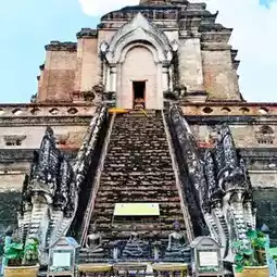 - Phra That Chedi Luang, measuring 60 meters on each side, is another significant chedi in Chiang Mai Province. Today, only half of the chedi remains. Due to the major earthquake during the reign of Queen Chiraprabha Devi, Rama XV of the Mangrai Dynasty, it is estimated that the chedi could have reached a height of 80 meters, making it the tallest chedi in northern Thailand at that time.