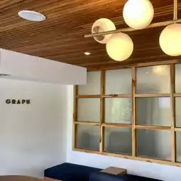 Graph - Every branch is beautifully decorated and stylish. Today, we're taking you to the Quarter branch. I love the minimalist, vintage vibe, with warm wood tones and dark blue.