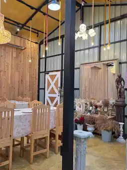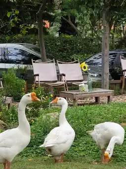 The shop is very beautiful, cute, and natural, with a stream, geese, piglets, and cute rabbits. It's fun, but during the rainy season, we had to sit cramped inside the shop. However, there's plenty of indoor seating. The entrance fee is 100 baht per person, but you can redeem your ticket for food and drinks in full. The food and drinks may be a bit pricey, but they're delicious.