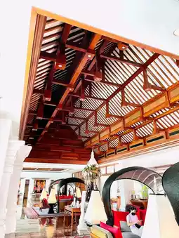 4. Common Areas - The riverside area is stunning, and the lobby's roof is impressive. The swimming pool is enormous, almost like a lake. However, the deck and riverside dining areas feel old and worn out, as if they belong to a different place. The hallway to the elevator is quite narrow, and there's only one elevator to access the rooms.