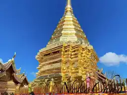 Highlights of Wat Phra That Doi Suthep impress visitors with its dazzling golden Lanna-style chedi, which houses the relics of the Lord Buddha, and the 300-step seven-headed Naga staircase leading up to the temple. There's also a spacious plaza offering panoramic views of Chiang Mai.