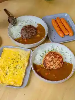 🍣🥩 Their signature dish is the Hamburg Curry. Hamburgers are available in salmon, pork, or beef, with curry toppings and rice bowls. The curry comes in plain or with cheese, with various add-ons and side dishes. Water and ice are complimentary.