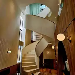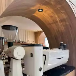 This small commercial building, with its own distinct design, is purposeful, and has a unique style.