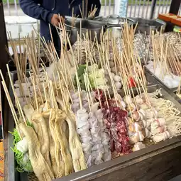 The skewers offer a wide variety of options, including pork, chicken, fish, meatballs, tofu 🥩🐔🐟, as well as vegetables like broccoli, lettuce, and enoki mushrooms 🍄🥦, making this meal both delicious and healthy. ✨
