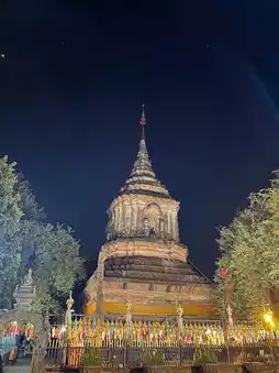 • 🏯 Ancient Grand Chedi: Built around the 20th Buddhist century, this towering structure showcases authentic Lanna-style architecture.
