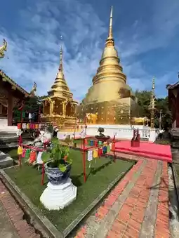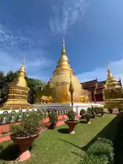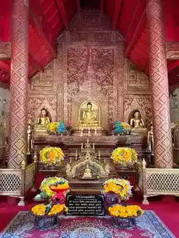 🏯 Wat Phra Singh in Chiang Mai is one of the most revered royal temples within the ancient city of Chiang Mai, Thailand. Built in 1345 during the Lanna Kingdom, it stands as a prime example of Lanna architectural artistry. The temple's name originates from the revered Phra Singh Buddha, a sacred statue believed to have come from Sri Lanka. Key structures within the temple include the grand main hall, the gilded scripture library, and the Viharn Lai Kham hall where the Phra Singh Buddha is enshrined. The hall also houses exquisite murals from the Lanna period. Wat Phra Singh serves not only as a significant Buddhist practice center but also as a focal point for Songkran Festival celebrations, drawing countless devotees and visitors to experience its solemn religious atmosphere and historical artistic value.