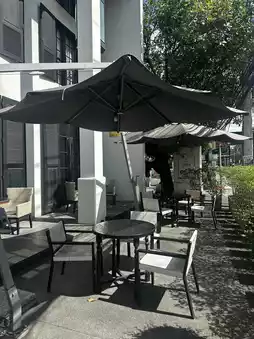 Luxury yet Chill: The restaurant's modern black and white décor exudes elegance and sophistication, yet offers a relaxing atmosphere with an outdoor poolside area, perfect for relaxing and chilling.