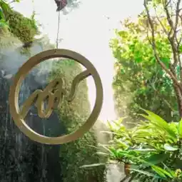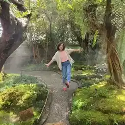 The interior is decorated in a tropical Thai moss garden style, with a variety of plants and a waterfall, creating a refreshing atmosphere throughout the entire space.