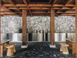 The shop is decorated in simple wood and stone tones, yet exudes a minimalist feel. The bamboo garden gives off a Japanese feel.